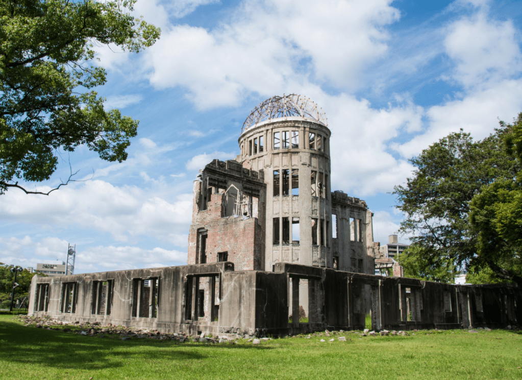 La Cupola della Bomba A, conosciuta anche come Memoriale della Pace di Hiroshima, è ciò che resta dell'ex Sala della Promozione Industriale della Prefettura. L'edificio fungeva da luogo per promuovere le industrie di Hiroshima. Quando esplose la bomba, esso fu uno dei pochi edifici a rimanere in piedi, e lo è ancora oggi. Patrimonio dell'umanità dell'UNESCO, la Cupola della bomba atomica è un collegamento tangibile al passato unico di Hiroshima.