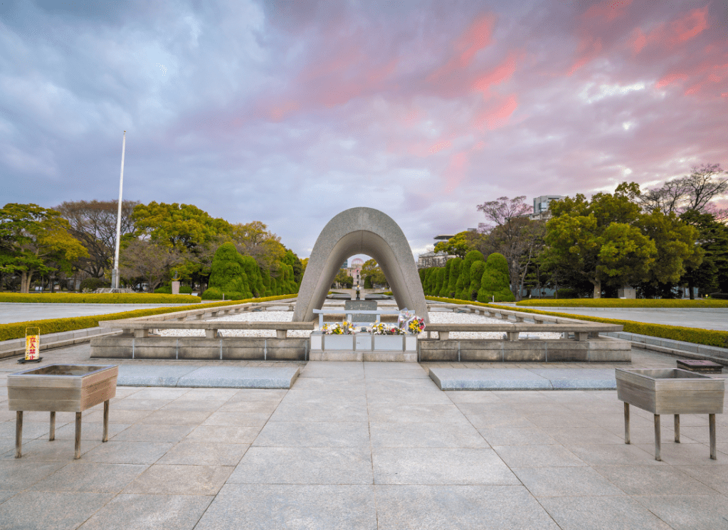 Con i suoi alberi, prati e sentieri pedonali, il Parco del Memoriale della Pace di Hiroshima si trova in netto contrasto con l'area circostante del centro, che prima del 6 agosto 1945 ospitava il cuore politico e commerciale della città. Quattro anni esatti dopo lo sgancio della bomba, fu deciso che l'area non sarebbe stata riqualificata, ma destinata a strutture commemorative per la pace.