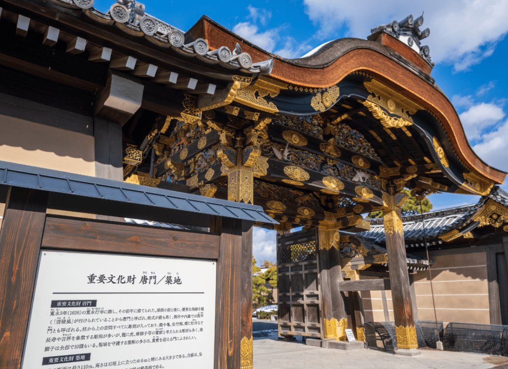 Il castello Nijō fu costruito nel 1603 come residenza a Kyōto di Tokugawa Ieyasu, primo shogun del periodo Edo. Suo nipote Iemitsu completò l'edificio 23 anni dopo e ampliò ulteriormente il castello aggiungendo un mastio a cinque piani. Il castello è stato designato patrimonio mondiale dell'UNESCO nel 1994.