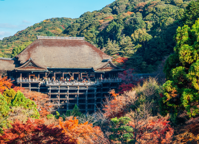 Il Kiyomizudera è uno dei templi più celebri del Giappone, edificato nel 780 sulle colline boscose a est di Kyōto, nel distretto di Higashiyama, noto per il suo palco in legno che sporge dalla sala principale, a 13 metri sopra la collina. Nel 1994, il tempio è stato aggiunto all'elenco dei siti del patrimonio mondiale dell'UNESCO.