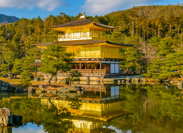 Il Padiglione d'Oro Kinkaku-ji (o Rokuon-ji) è famoso per essere rivestito in lamina d'oro. Fu edificato per essere la villa di riposo dello shogun Ashikaga Yoshimitsu. Alla sua morte, nel 1408, la villa fu convertita in un tempio Zen. Il Padiglione d'Argento, fu edificato qualche decennio dopo dal nipote di Yoshimitsu, Ashikaga Yoshimasa.
