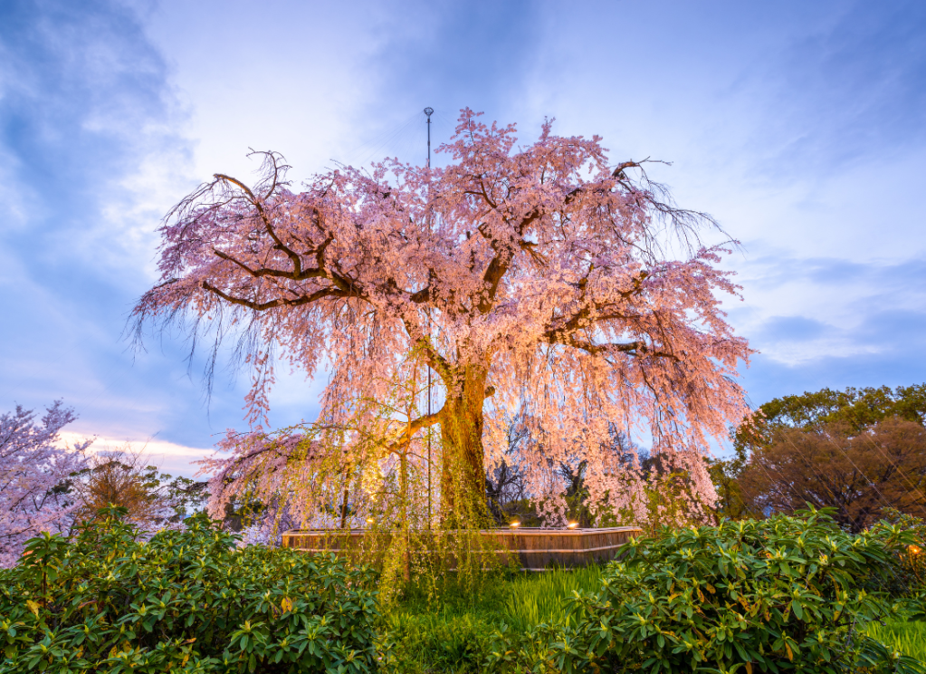 Il Parco Maruyama è un parco pubblico sito in prossimità del Santuario Yasaka nel distretto di Higashiyama. Nella prima metà di aprile, quando i ciliegi sono in piena fioritura, il parco diventa il luogo più popolare e affollato di Kyōto per la pratica dello hanami, l'ammirazione dei ciliegi in fiore.